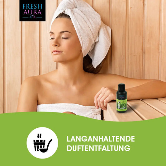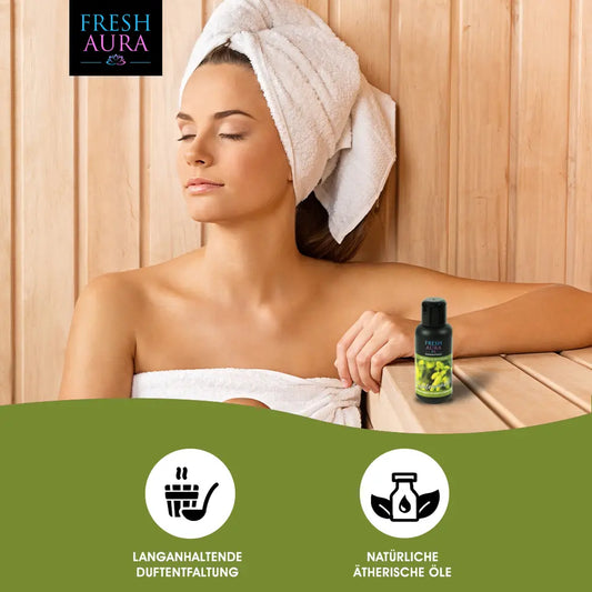 Du liebst es, in der Sauna zu entspannen und möchtest dabei einen angenehmen Duft genießen? Dann ist der Fresh Aura Saunaaufguss mit ätherischen Ölen genau das Richtige für dich!